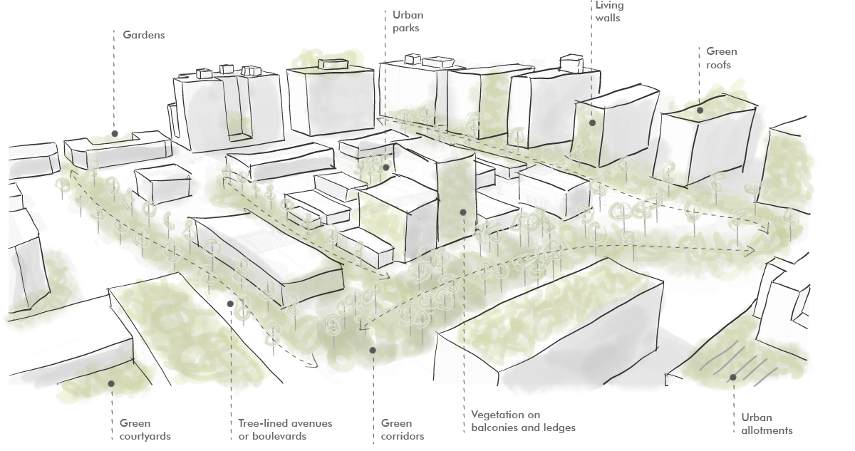 It consists of recovering the space that nature has lost in the city, in order to combat the problems caused by urban development.today, this concept is taking on a larger scale approach, and we speak of Urban Green Infrastructures (UGI). The incorporation of elements such as living walls, green roofs or green corridors, generate new green infrastructures in cities that help to interconnect urban spaces with nature.